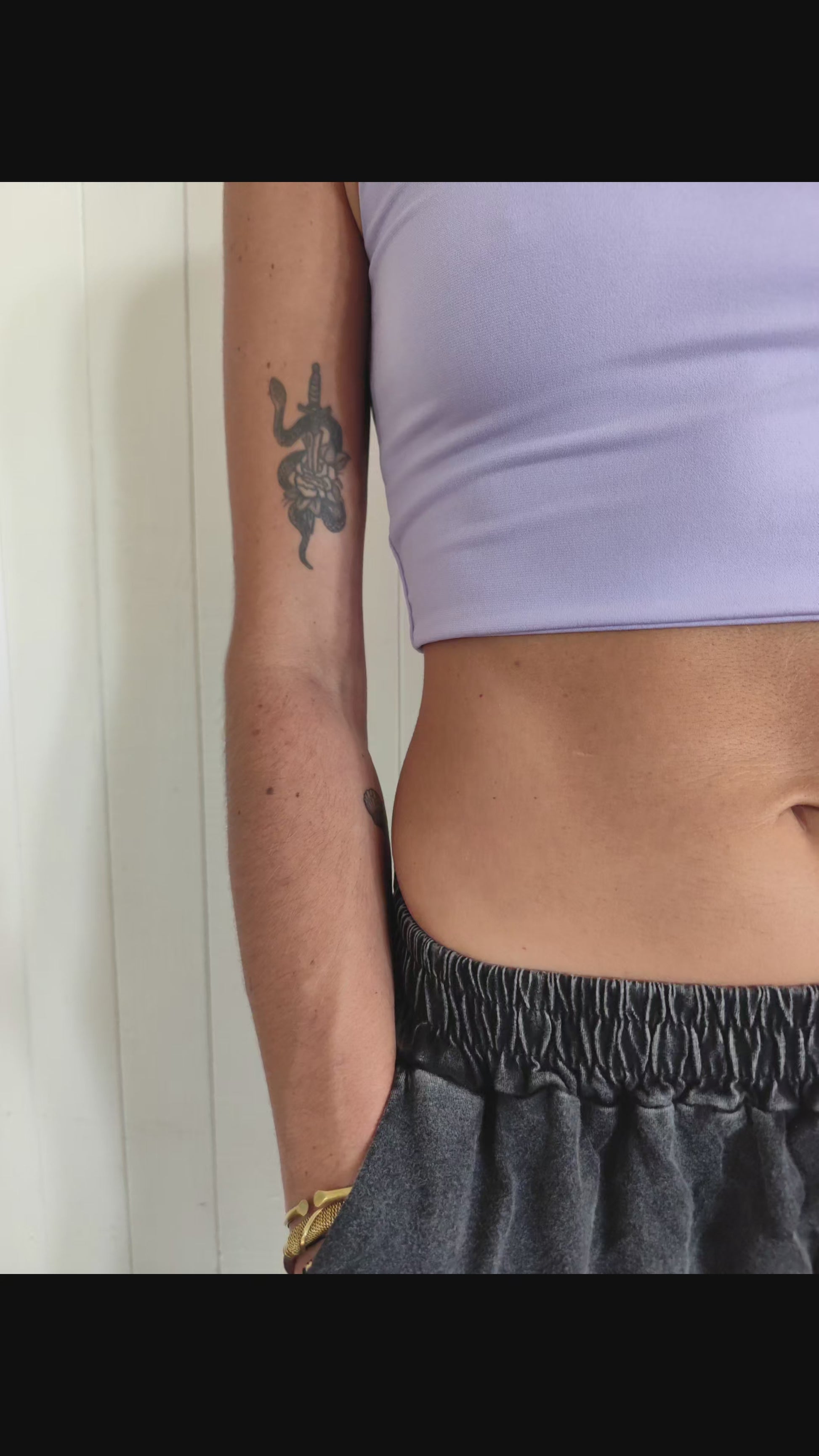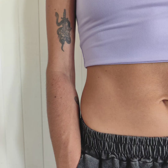 Top Lila o Negro talla única, tela lycra ultra suave y elasticada.